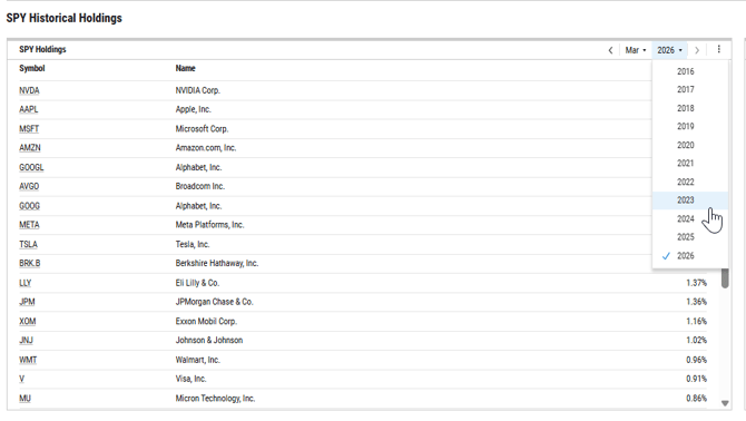 How far back do historical holdings go?