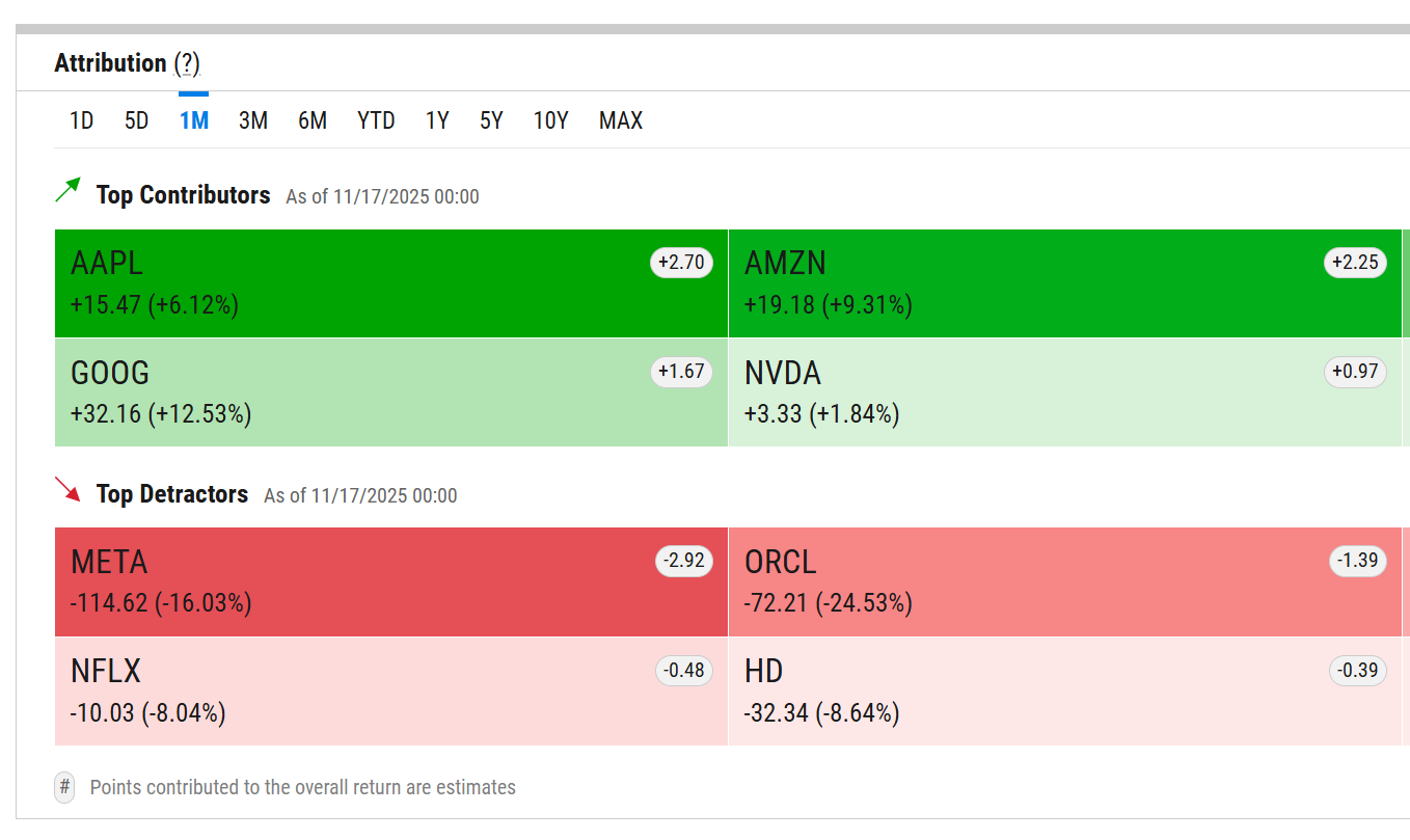 - During this period, AAPL contributed 2.7 to the portfolio’s total return level.
